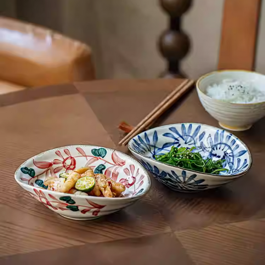 Japanese Hand-Painted Shallow Bowl - Appetizer & Dessert