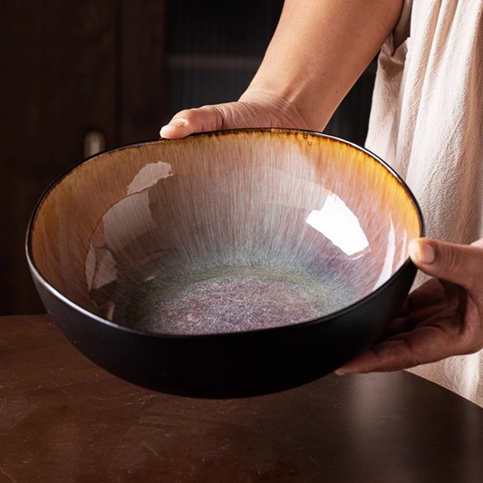 Retro Ceramic Soup Bowl 11" - Kiln-Changed Lotus Leaf