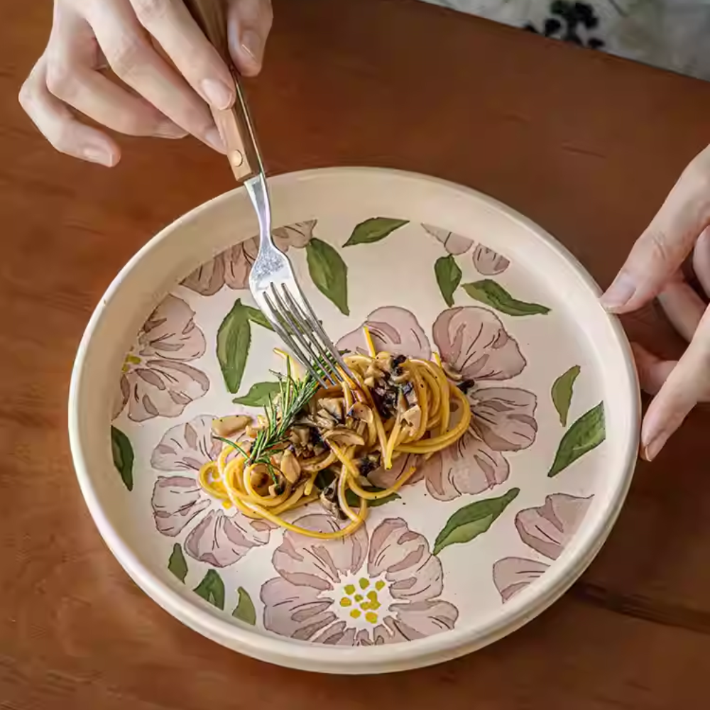 Step back in time with our exquisite Middle Ages style floral dinner plate. This high-value ceramic flat plate, measuring 8.5 inches, features a captivating Plants and Flowers pattern inspired by medieval artistry. Designed to elevate your dining experience, it's perfect as an elegant Western steak plate or for serving any main course with a touch of historical charm.